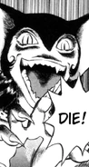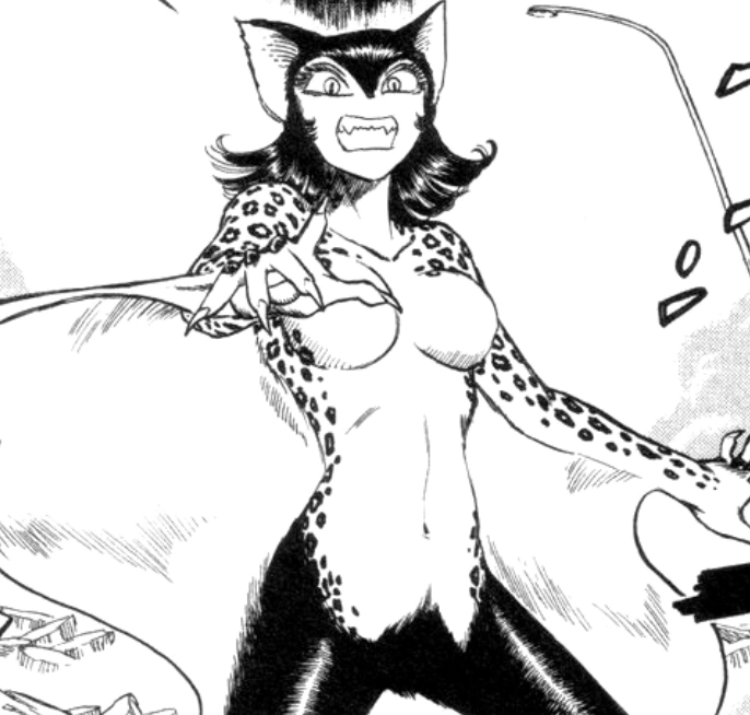 Police attempted to stop her attack though nothing seemed to work on her, with Badfly gleefully swatting bullets away. However with the sudden arrival of Cutie Honey, who enters the scene by driving into Badfly's face on her motor-cycle, the tide of the battle begins to turn. Enraged Badfly calls upon her Panthers to assist her, though they prove to serve as little more of an annoyance to Honey who disposes of them quickly. After a short fight, Honey blinds one of Badfly's eyes and rushes away in her confusion. After havign regained her senses, Badfly curses Honey's name, only for the Warrior of Love to come flying down from the sky and slicing Badfly in half, killing her.