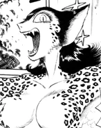 Badfly Claw resembled a cross between a leopard and a butterfly, her body was covered in spots and she wore skin tight leather trousers with white boots, she had long hair and large cat like ears atop her head with massive organic looking wings under her arms.