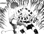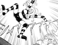 Tarantula Panther spent part of the series spying on the Safety Bureau office informing the rest of Panther Claw of the activities of Natsuko Aki and Cutie Honey. She was later discovered when Honey noticed one of her threads during a conversation about an information snitch. Honey transformed and fought Tarantula Panther off until she escaped teasing Honey on what was to come. She later formulates a plan using Fire Claw as bait for Honey to come fight her and uses her webbing to track listen in and track down St. Chapel Academy where Honey was hiding out at. Confronting Natsuko and the dorm dean Miharu Tsuneni, Tarantula Claw grappled them while having her subordinates attack the school. Miharu subdued Tarantula Claw with her whip until she was decapitated by Dragon Panther. Tarantula Panther then killed Ayuko Sato by slicing her in half with her webbing after Ayuko was screaming at the head of Miharu. As Dragon Panther began to be overwhelmed, Tarantula Panther called for a tactical retreat escaping with Dragon.